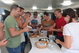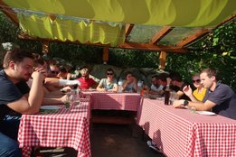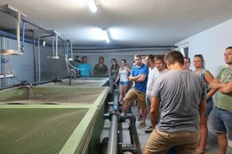 Zum Abschluss besichtigten wir den Familienbetrieb Edlinger. Die Familie Edlinger hat sich auf die Herstellung von Fruchtsirup und Schnaps spezialisiert. Die weiteren Standbeine des Betriebes sind die Veredelung von Kräutern und eine Aquaponikanlage. Besonders die Aquaponikanlage die sich im ehemaligen Milchviehstall befindet ist das Aushängeschild des Betriebes. Hier werden seit ein paar Jahren - statt Kühe -Welse gezüchtet, veredelt und ab Hof verkauft. Ausklingen ließen wir den Tag mit leckeren Spezialitäten vom BioBetrieb Edlinger. Ein agrarischer und genussreicher Tag für den Landjugend Bezirk Graz Umgebung.