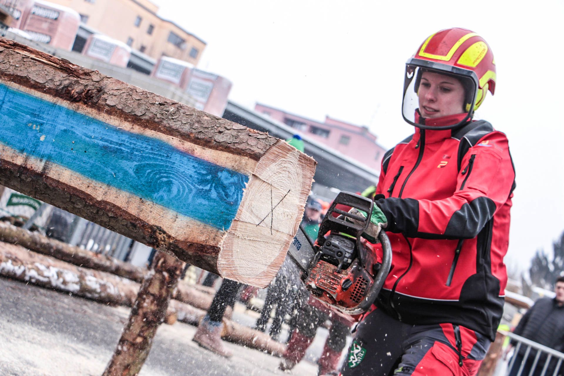 Die Teilnehmenden dürfen zu einer Station nur mit vorschriftsmäßiger Ausrüstung und Bekleidung (Schuhe mit Stallkappe, Schnittschutzhose, Schutzhelm, Handschuhe) antreten. Sicherheitsausrüstung wird vor Ort kontrolliert!