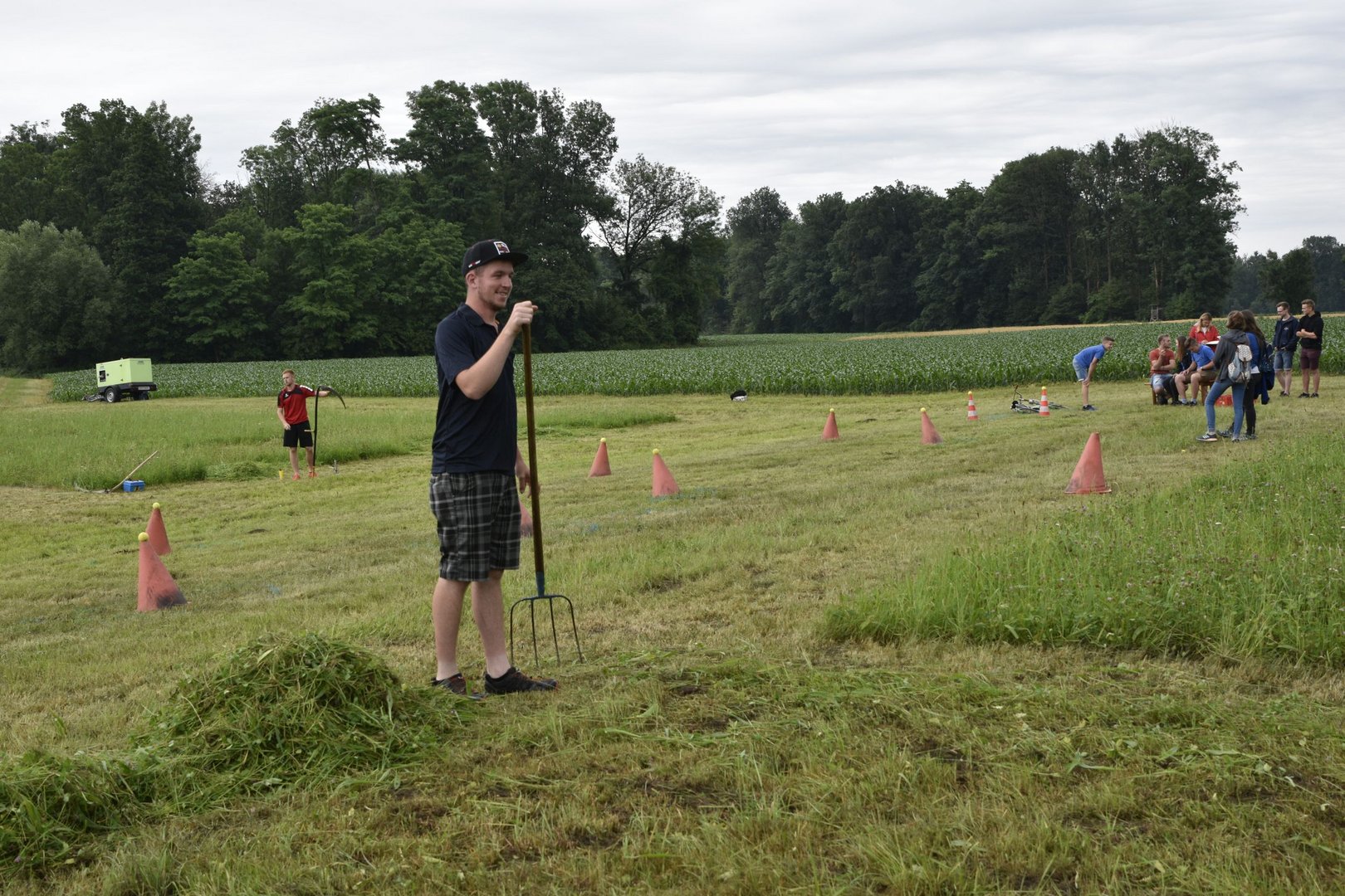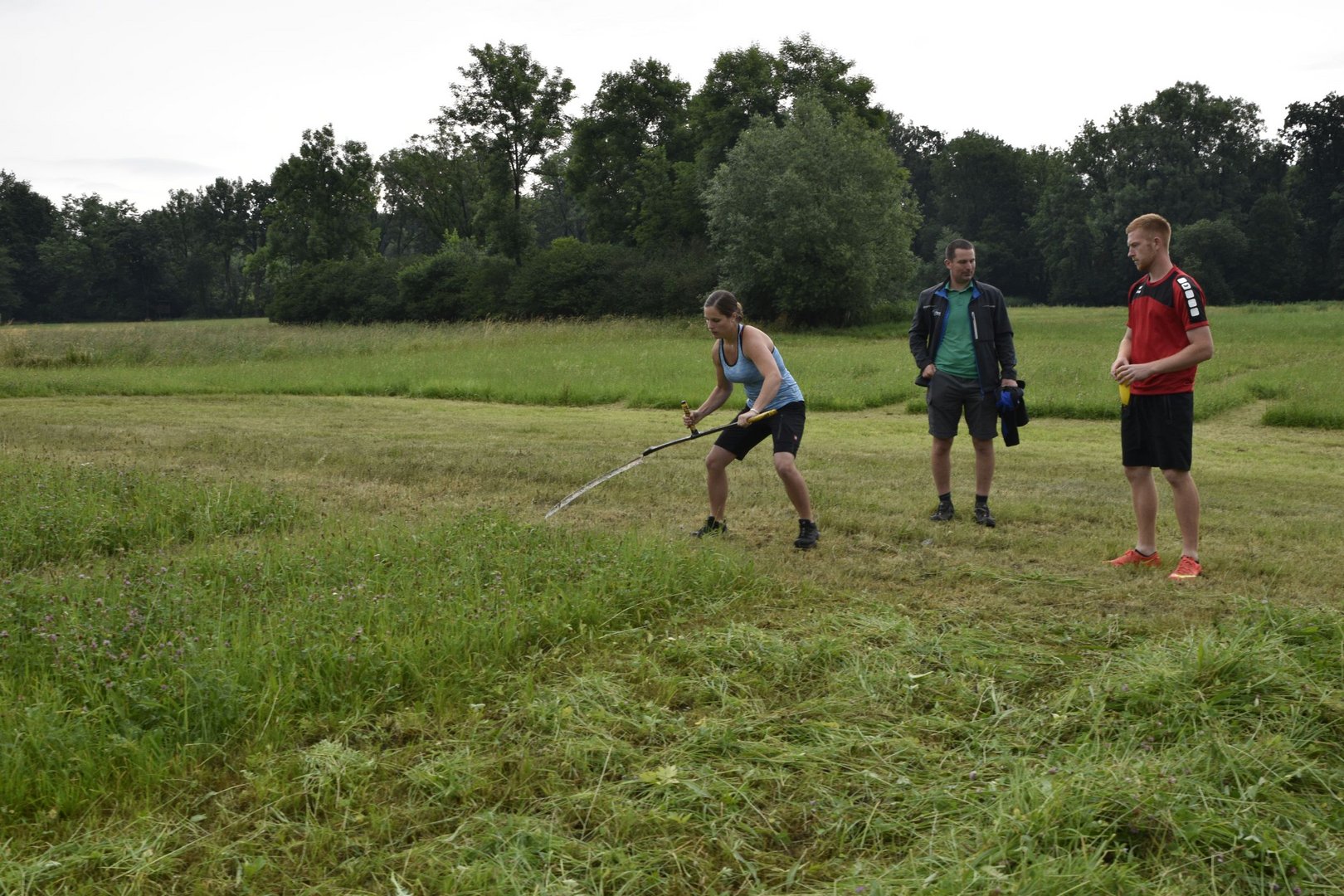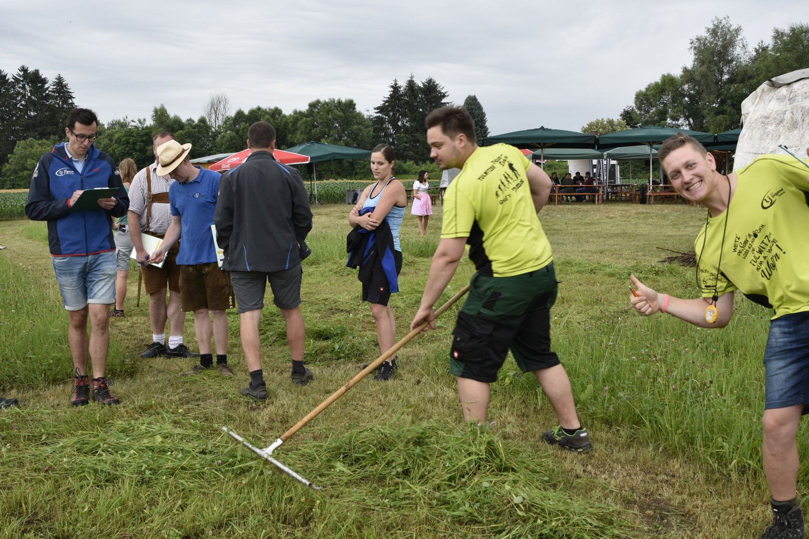 So lautete das Motto beim diesjährigen TFM (Traktor- Fahrrad- Mähwettbewerb). Dieses Spektakel fand zum zweiten Mal in Feldkirchen statt, bei unserer jüngsten Ortsgruppe im Bezirk GU. Im Vorderfeld hatten wir schon leichte Komplikationen mit den Wettervorhersagen und dem Wettergott, aber wie sagt man so schön: „Es gibt ka schlechts Wetter, sondern nur schlechte Ausrüstung.“ Genau dieses Sprichwort beschrieb die Veranstaltung am besten. Lange blieben die Teilnehmer nicht im Trockenen, weil der Regen gleich nach Beginn des Bewerbes eintrat. Darum fiel der Fahrradbewerb Wort wörtlich ins Wasser. Nichts desto trotz ging der Mähwettbewerb planmäßig über die Bühne und es waren einige motivierte Leute dabei die im Regen die gute Schneid unter Beweis stellten. Unter der genauen und fachkundigen Aufsicht der Jury mähten die Damen eine Fläche von (5x5) und die Herren (7x7). Bei den Damen konnte sich Elisa Prietl (Großstübing) vor Maria Prietl (Großstübing) und Nina Arbesleitner (Großstübing). Bei den Herren ging der Sieg nach Tulwitz an Thomas Harrer, Zweiter wurde Florian Hofer (Schrems) und Dritter Hans Prietl (Großstübing) Natürlich gab es auch eine Gästeklasse, hier siegte Martin Pöllabauer aus Großstübing.