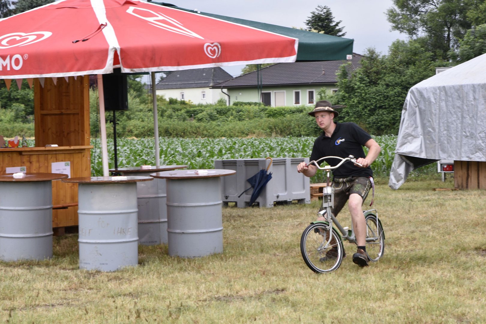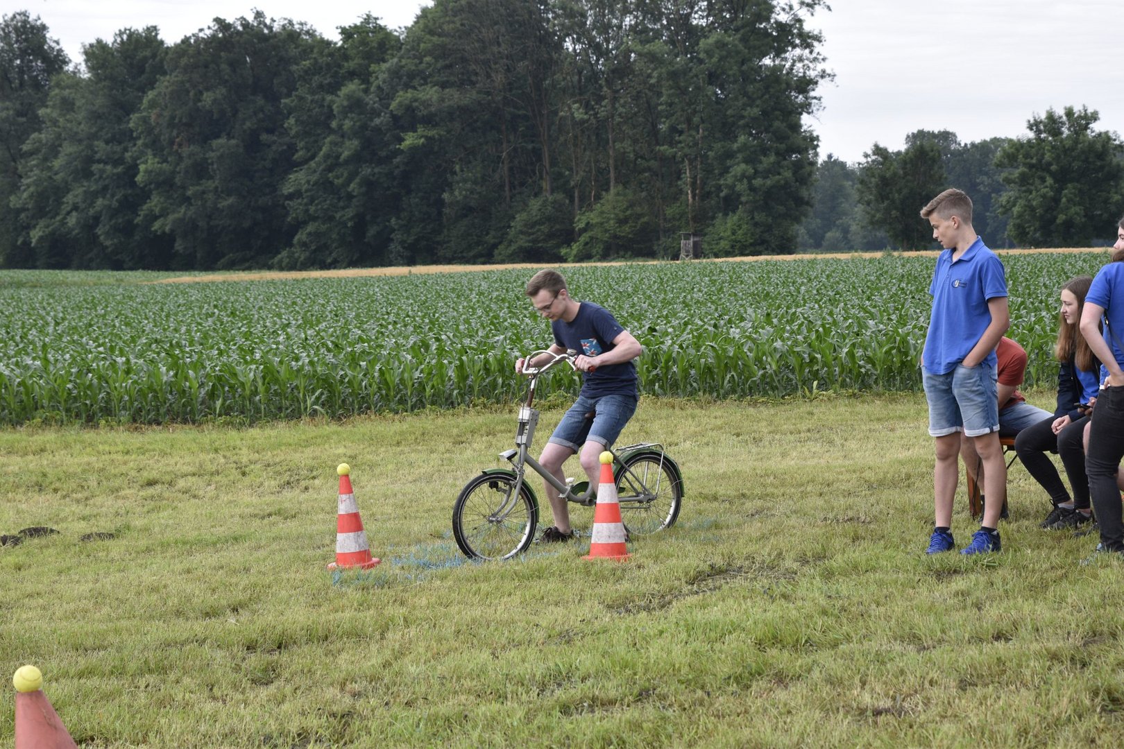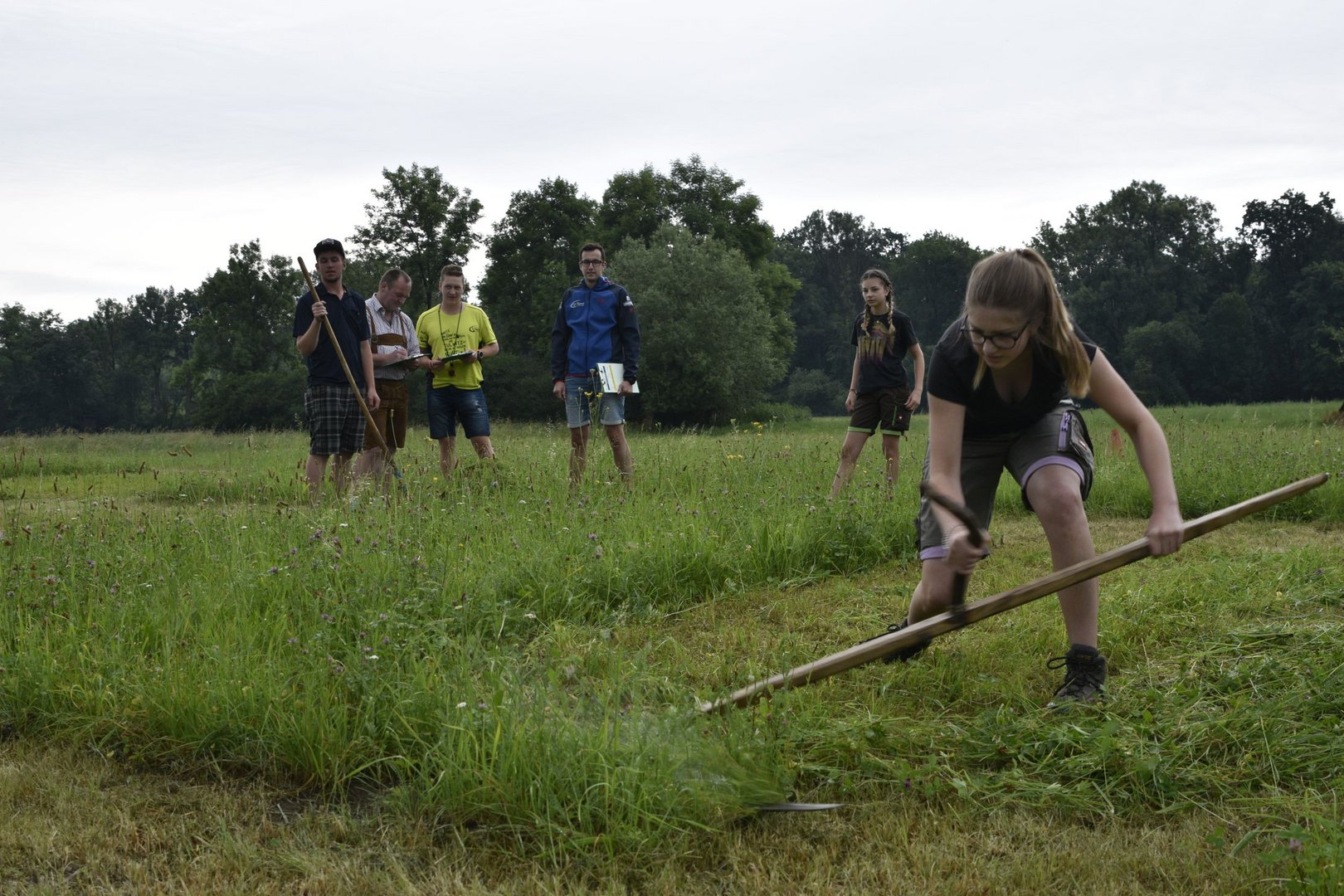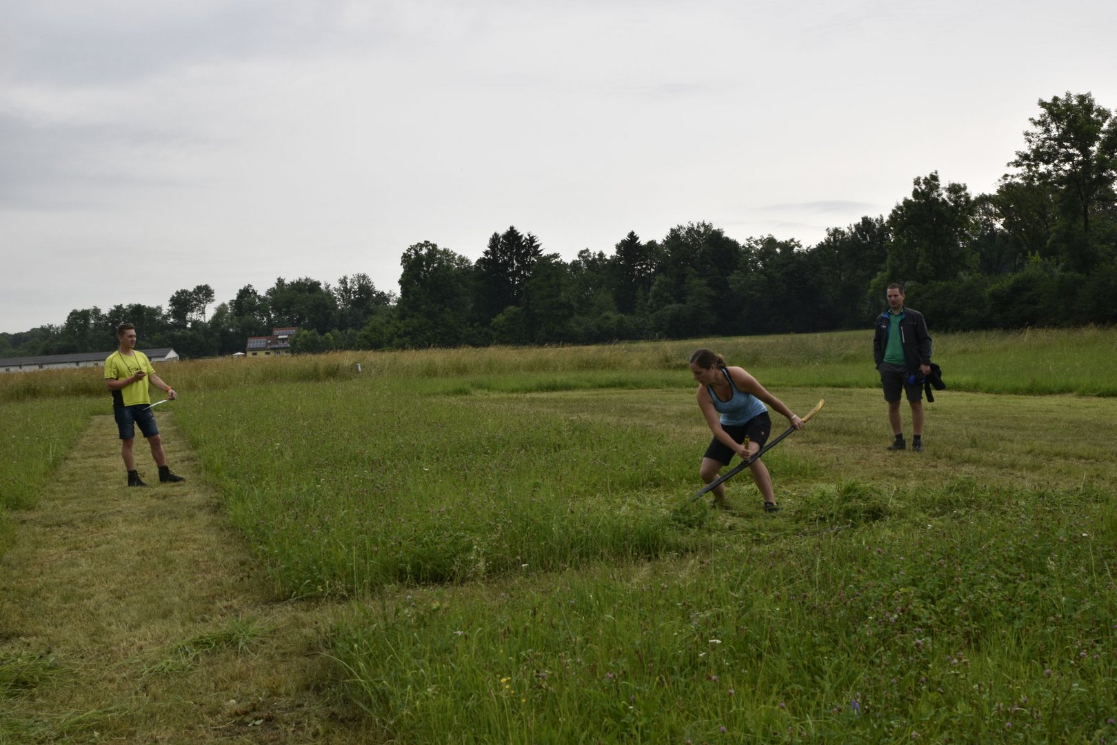 So lautete das Motto beim diesjährigen TFM (Traktor- Fahrrad- Mähwettbewerb). Dieses Spektakel fand zum zweiten Mal in Feldkirchen statt, bei unserer jüngsten Ortsgruppe im Bezirk GU. Im Vorderfeld hatten wir schon leichte Komplikationen mit den Wettervorhersagen und dem Wettergott, aber wie sagt man so schön: „Es gibt ka schlechts Wetter, sondern nur schlechte Ausrüstung.“ Genau dieses Sprichwort beschrieb die Veranstaltung am besten. Lange blieben die Teilnehmer nicht im Trockenen, weil der Regen gleich nach Beginn des Bewerbes eintrat. Darum fiel der Fahrradbewerb Wort wörtlich ins Wasser. Nichts desto trotz ging der Mähwettbewerb planmäßig über die Bühne und es waren einige motivierte Leute dabei die im Regen die gute Schneid unter Beweis stellten. Unter der genauen und fachkundigen Aufsicht der Jury mähten die Damen eine Fläche von (5x5) und die Herren (7x7). Bei den Damen konnte sich Elisa Prietl (Großstübing) vor Maria Prietl (Großstübing) und Nina Arbesleitner (Großstübing). Bei den Herren ging der Sieg nach Tulwitz an Thomas Harrer, Zweiter wurde Florian Hofer (Schrems) und Dritter Hans Prietl (Großstübing) Natürlich gab es auch eine Gästeklasse, hier siegte Martin Pöllabauer aus Großstübing.