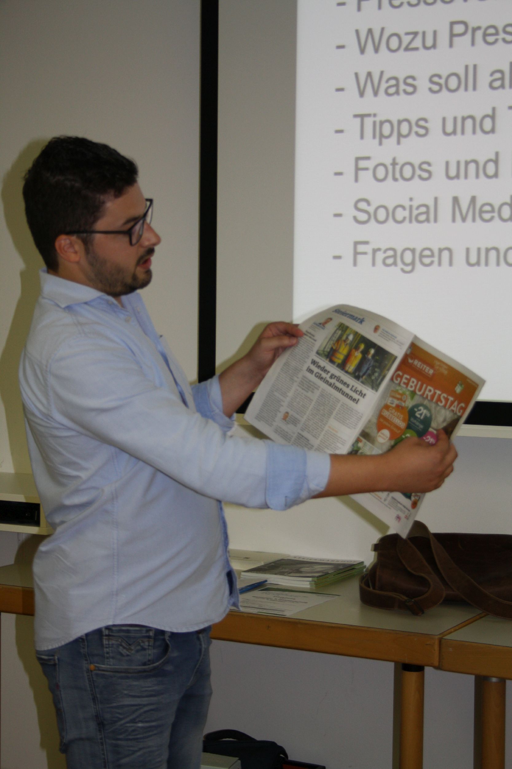 Gastreferent Alois Lipp von der WochenzeitungsGmbH – Graz Umgebung Süd berichtete über  Medienverhalten, Presseaussendungen und gab den TeilnehmerInnen Tipps und Tricks, wie man die Regionalen Zeitungen bestmöglich erreichen kann. Dabei ist der persönliche Kontakt zu den RedakteurInnen von großer Bedeutung. Im Anschluss der 1-stündigen Presseschulung wurde die Gruppe für die Homepageschulung geteilt. Regionalbetreuerinnen Ursula Pressler und Magdalena Diethardt zeigten den OrtsgruppenfunktionärInnen die Handhabung des Systems. Als Abschluss durften die TeilnehmerInnen selbstständig an deren Ortsgruppen- & Bezirkshomepages arbeiten, die beiden Referentinnen standen mit Rat und Tat zur Seite.