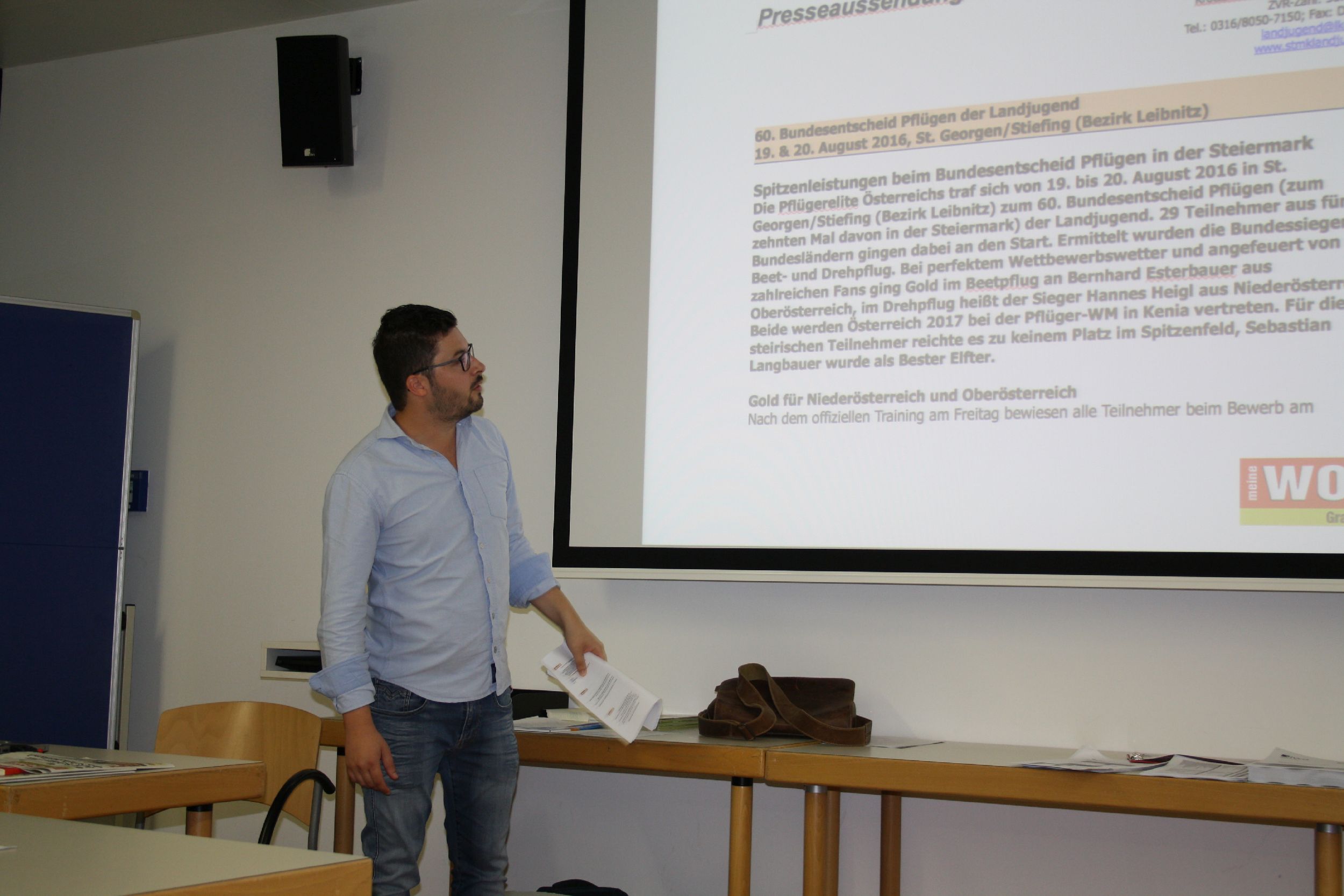 Die Landjugendmitglieder der Bezirke Deutschlandsberg, Graz Umgebung und Voitsberg drückten am 30. August 2016 die Schulbank und verbrachten den Abend damit, sich über richtige Pressearbeit und über das neue Homepagesystem zu informieren.